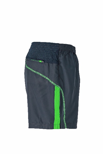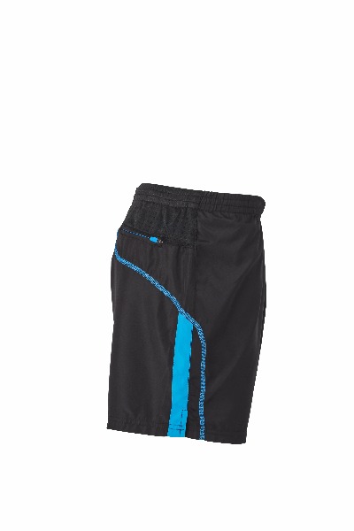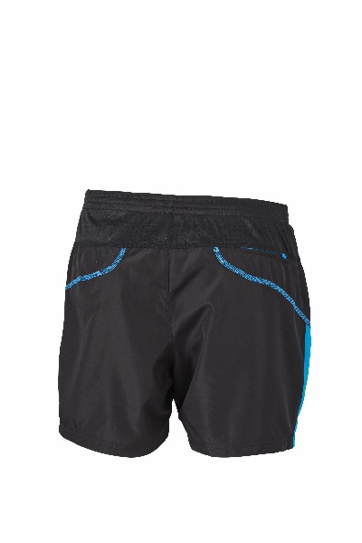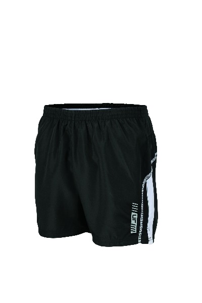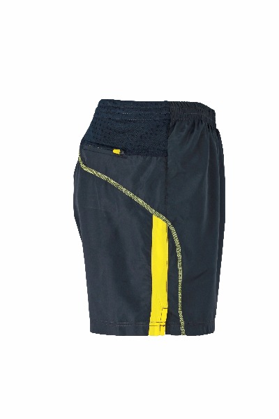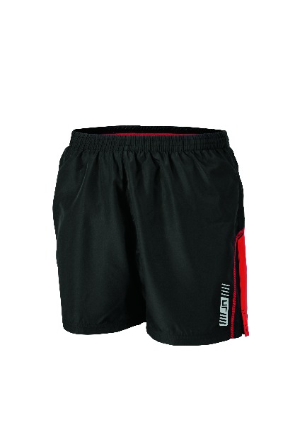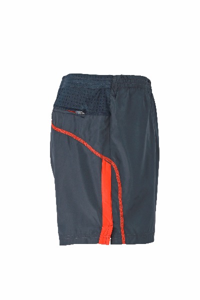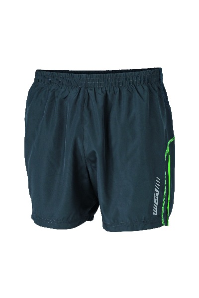 Short de course Homme. Petite poche arriŠre pour cl‚. Ceinture ‚lastiqu‚e et cordon de serrage … la taille. Inserts contrast‚s et marquage r‚fl‚chissant. Slip int‚gr‚. 100 % polyester microfibre.