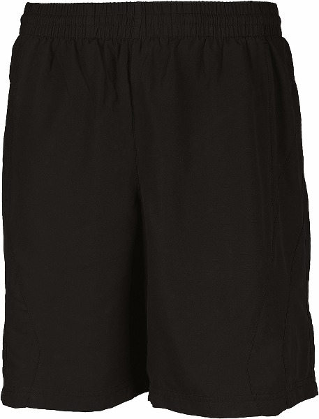 100% polyester à séchage rapide. 2 poches côtés. Taille élastiquée avec cordon de serrage. Doublé maille filet. Découpe côté ton sur ton.