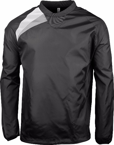 100% polyamide Oxford, enduction polyuréthane PU. Déperlant. Encolure ronde avec col et empiècement bord-côte 1x1 pour faciliter le passage de tête. Manches raglan. Découpes contrastées corps et bas de manches. Bas de manches avec bande élastique.