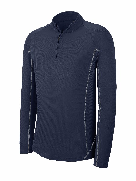 100% polyester polytricot. Manches raglan. Surpiqûres contrastées.