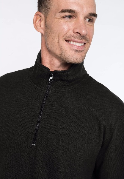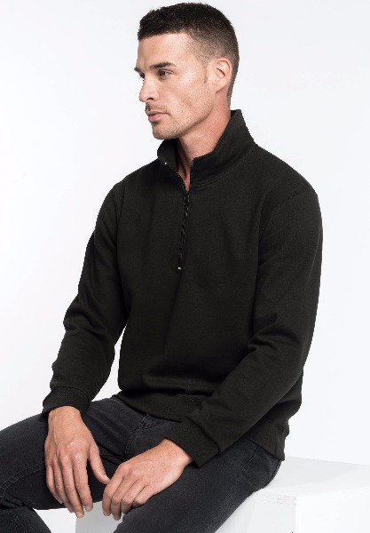 80% coton / 20% polyester. Molleton gratt‚. Manches mont‚es. Coupe tubulaire. Col zipp‚ avec bande de propret‚ ton sur ton. Finition bord-c“te bas de manches et de vˆtement.