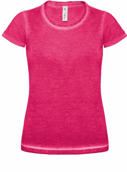 100% coton pr‚-r‚tr‚ci Ring-Spun. T-shirt manches courtes tendance en Single Jersey teint‚ … froid. Coupe f‚minine. Col rond ras-du-cou avec bande de propret‚. Manches mont‚es. Pigmentation accentu‚eÿsur les coutures (col, bords de manche et bord inf‚rieur). Finition des manchesÿ: ourlet pli‚ … brides d'arrˆt, renfor‡ant ‚galement l'effet de pigmentation. Coutures invisibles sur le bord inf‚rieur.