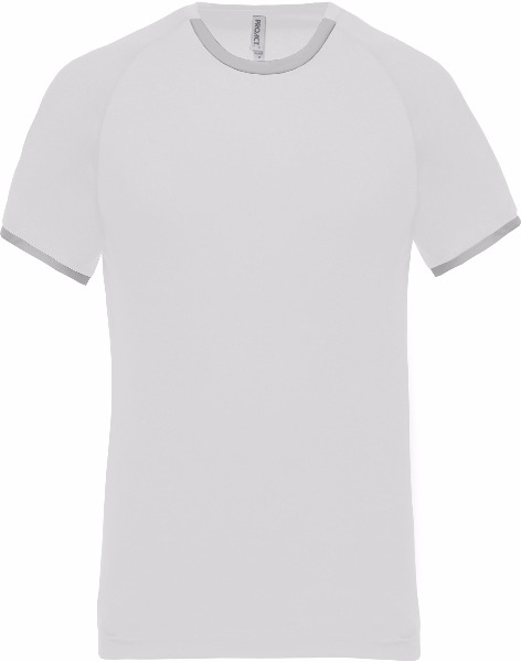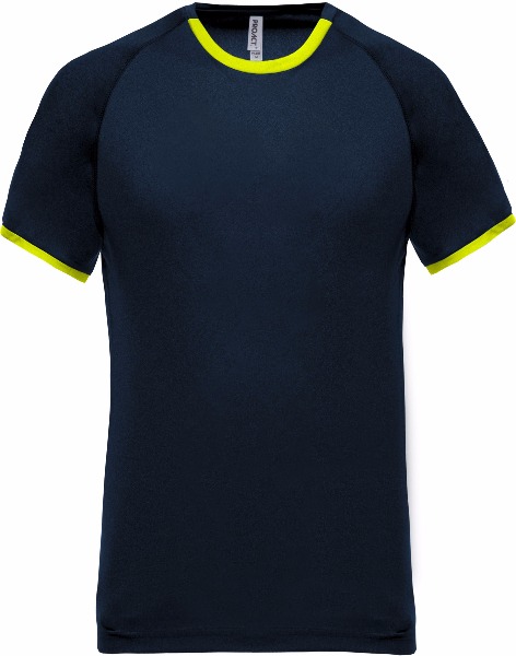 100% polyester interlock. Manches raglan. Bande de propreté au col. Bande contrastée sur l'encolure et au bas des manches. Finitions surpiqûres ton sur ton aux emmanchures.