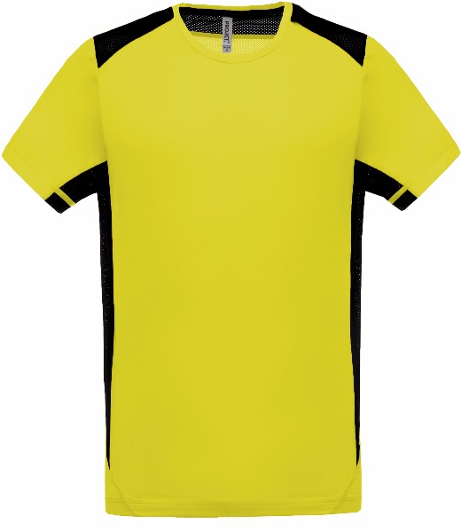 92% polyester / 8% élasthanne 160g/m². Empiècements en maille ajourée 94% polyester / 6% élasthanne 180g/m². Tissu à séchage rapide. Matière souple et coupes étudiées pour une pratique multisports. Découpes latérales, aux épaules et sous les manches en maille ajourée pour une grande liberté de mouvement.