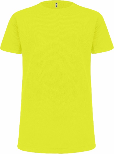 100% polyester. Tissu léger à séchage rapide. Encolure ronde avec bande de propreté. Manches raglan avec points de recouvrement. Finition double aiguille à l'encolure, bas de manche et de vêtement.