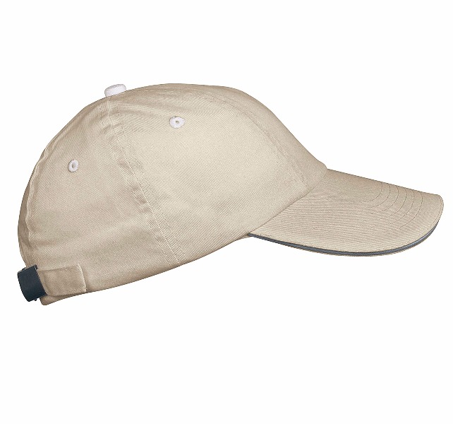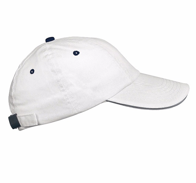100% coton sergé léger. Panneau frontal pour faciliter la personnalisation. Tranche de la visière de couleur contrastée. Fermeture arrière réglable par boucle métallique.