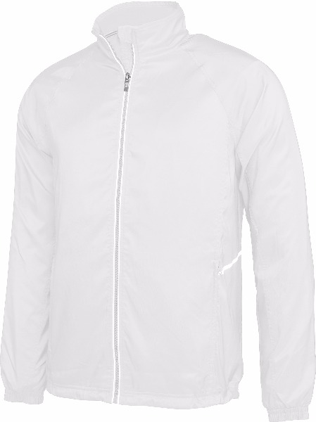 100% polyester diamond. Tissu à séchage rapide. Entièrement doublée filet. Fermeture zippée avec passepoil réfléchissant. 2 poches zippées devant. 1 poche intérieure. Bas de manches élastiqué. Cordon de serrage au bas du vêtement avec stoppeurs. Bande réfléchissante côtés. Zip pour personnalisation.