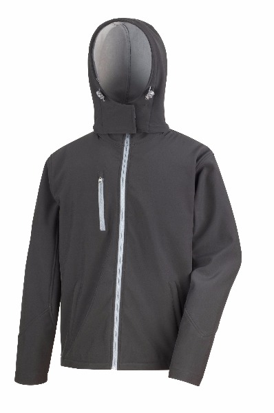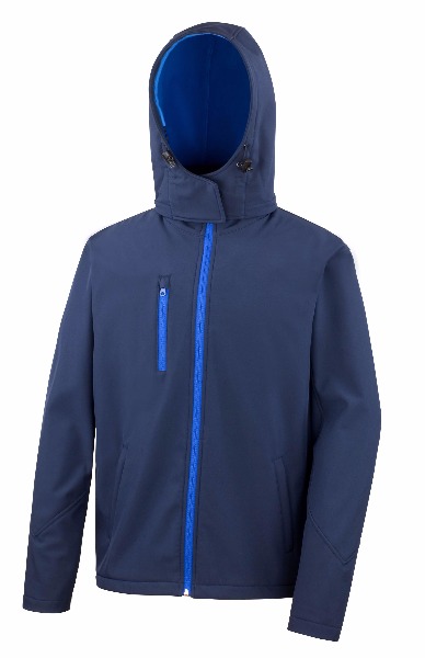 Tissu à 3 couches soudées : couche extérieure : 93% polyester / 7% élasthanne, couche intermédiaire : membrane TPU respirante 1000 g/m²/24h et imperméable 8000mm, couche intérieure : 100% polyester micropolaire. Rabat de protection intérieur. Empiècement décoratif à l`avant et dans le dos. Poches latérales zippées. Capuche escamotable et réglable.