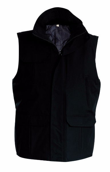 4 poches extérieures (3 poches rabat et une poche zippée). Bande de serrage élastique avec stoppeurs à l'emmanchure (cachée). 2 poches intérieures